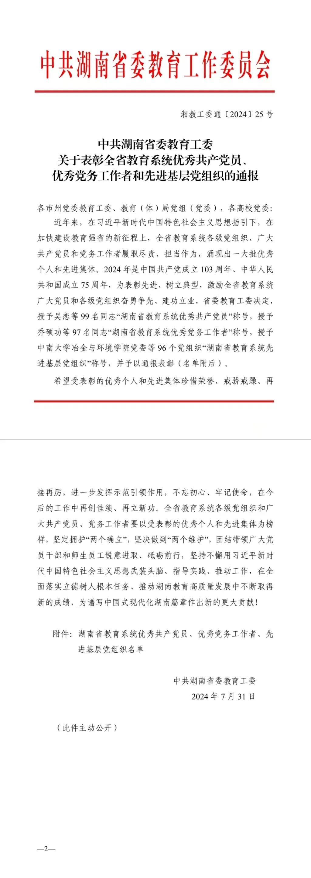 近日,湖南省委教育工委发布《关于表彰全省教育系统优秀共产党员、优秀党务工作者和先进基层党组织的通报》,我校动物科技学院党支部荣获“湖南省教育系统先进基层党组织”。