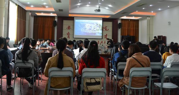 学生来到多功能厅观看学院宣传片
