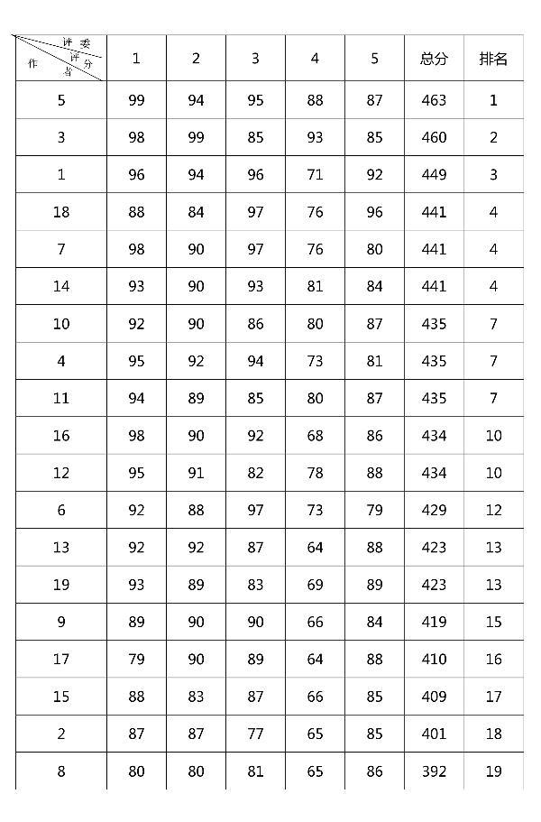 解说词撰写评分情况一览