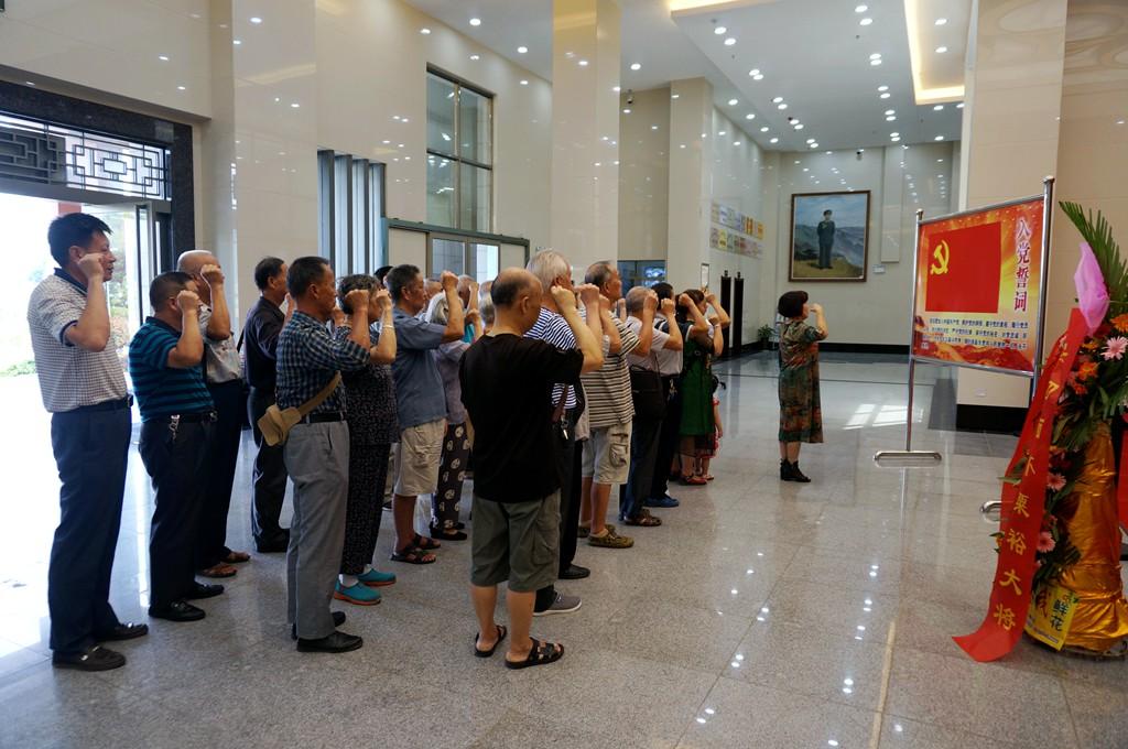 老同志们怀着无比崇敬的心情来到粟裕将军纪念馆,为粟裕将军敬献了花篮,并列队肃立三鞠躬,以表达对革命先辈的缅怀之情。随后面对着粟裕雕像和鲜红的党旗,全体老党员们郑重地重温了入党誓词。